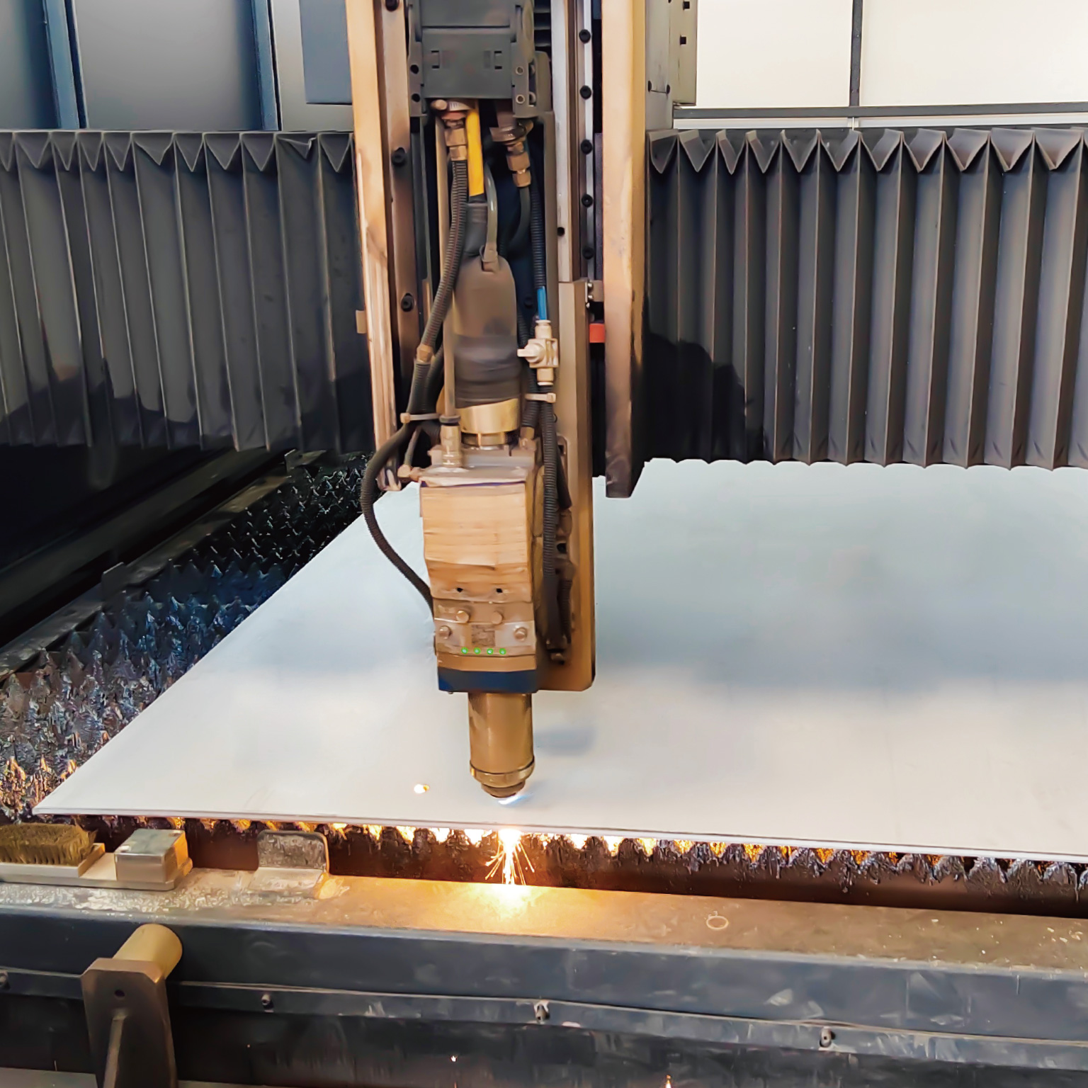 01 Inputting the confirmed drawing into the computer, bolt holes and openings are cut by CNC laser cutting machine automatically.